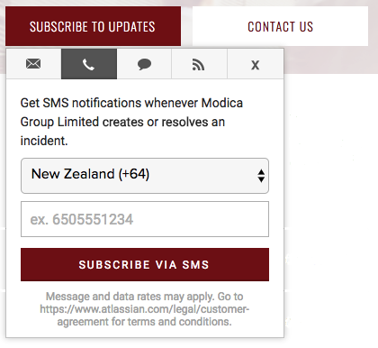 As part of the on-boarding process customer nominated email addresses or mobile numbers will be subscribed to the Status Updates page.