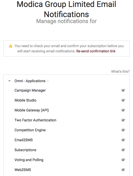 There will also be a subscription confirmation email sent to the nominated email address. If this does not come through you can re-send the email via the link on the manage notifications page