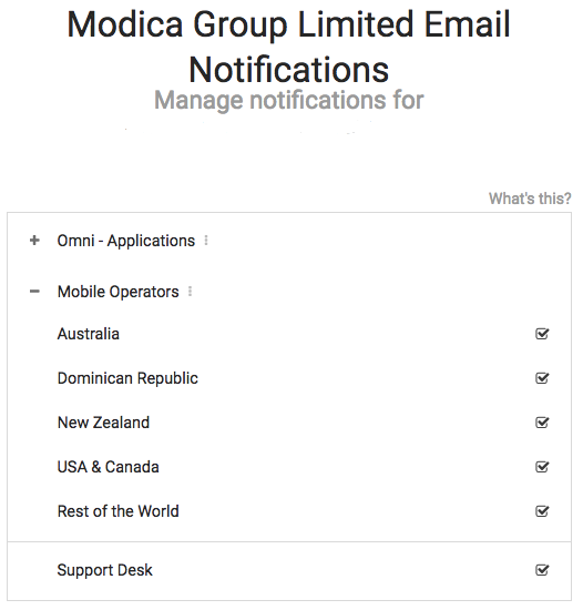 You are then taken to a Manage Notifications page where you can choose the notifications you wish to receive. All options are ticked by default and you can unselect those that are not relevant.